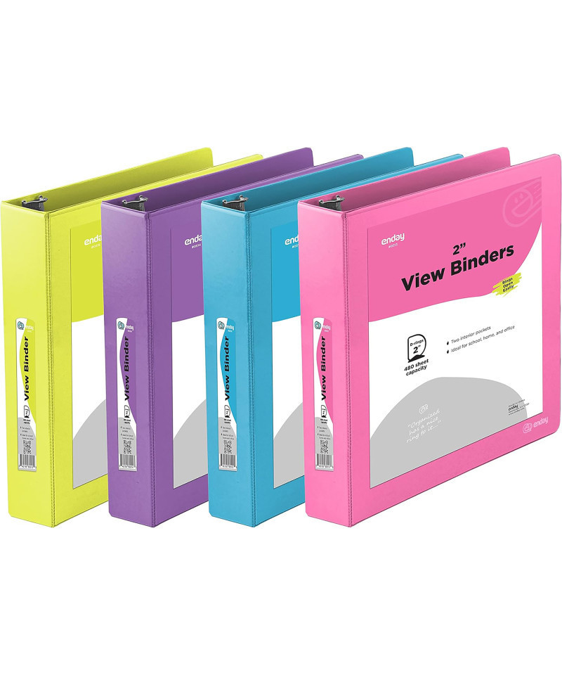 The customizable 2-Inch 3-Ring Binder is designed for efficient and versatile organization at school, home, or the office. Sold as a 4-pack in assorted colors, these binders are perfect for color-coding by subject or project, making them both kid-friendly and professional. The durable, tear-resistant cover ensures long-lasting use, while the lightweight design makes it easy to carry and store. With a transparent, non-stick overlay on the front, spine, and back, this binder allows for full customization, ideal for personal or business use.