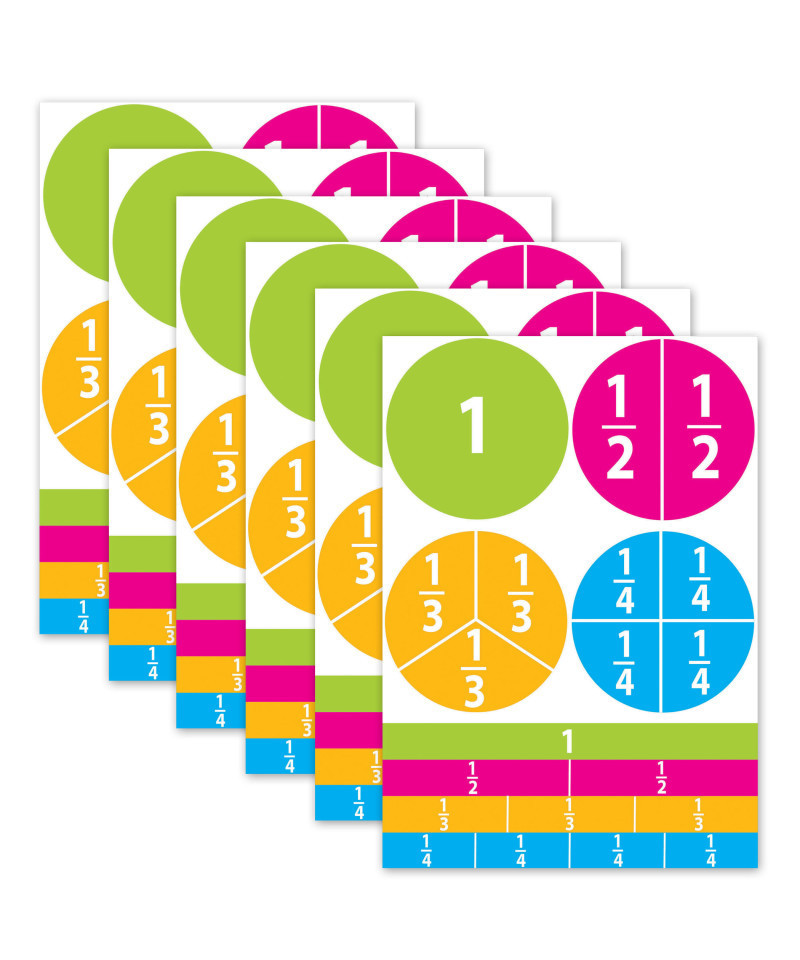 Die-cut magnetic fractions comes on 8.5" x 11" easy punch out sheet. Great for use in the classroom or at home! Color coded and great for learning and improving math skills. Write-on/Wipe-off surface allows use with dry erase markers or chalk pens! Each pack includes 20 pieces of pre-printed fractions. Sold as 6 packs for a total of 120 pieces.