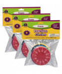 Each set includes nine circles, each measuring 3-1/2". One circle is whole. The other eight are divided into common fractions: 1/2, 1/3, 1/4, 1/5, 1/6, 1/8, 1/10, 1/12). Nine colors. 51 total pieces per set. Foam is lightweight, soft, quiet, and washable. Comes in a resealable storage bag. Teaching tips are included. Sold as 3 sets for a total of 153 pieces.