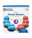 Turn everyday quizzes into fun game-show-style competitions! Buzz in and win with team games in the home or classroom with this set of Team Answer Buzzers from Learning Resources! This set comes with 8 game buzzers: 4 for the red team, and 4 for the blue team. Once you've settled on teams for classroom game shows or at-home game nights, you'll always know who's buzzing in: each team's buzzers make unique sounds that are loud, clear, and easy to tell apart! In addition to adding a fun interactive element to classroom and at-home games, this set of Team Answer Buzzers also provides great opportunities for lessons in social skills like sportsmanship, turn-taking, and teamwork. Each durable game buzzer is powered by replaceable AAA batteries (sold separately), so they're ready for years of fast-paced, hands-on games for years and years to come!
