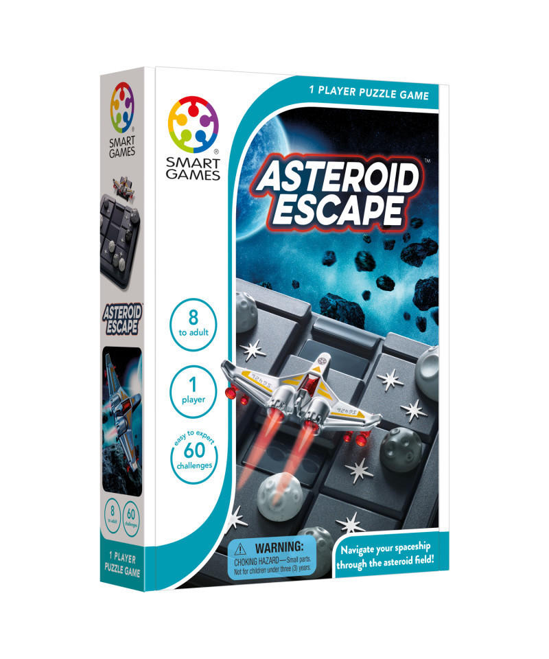Can you navigate your spaceship through an asteroid field? Your flying skills will be tested to the limit in order to escape! SmartGames Asteroid Escape is a galactic sliding puzzle with 60 missions, from beginner to expert. Includes a game board with lid, making it perfect for travel!