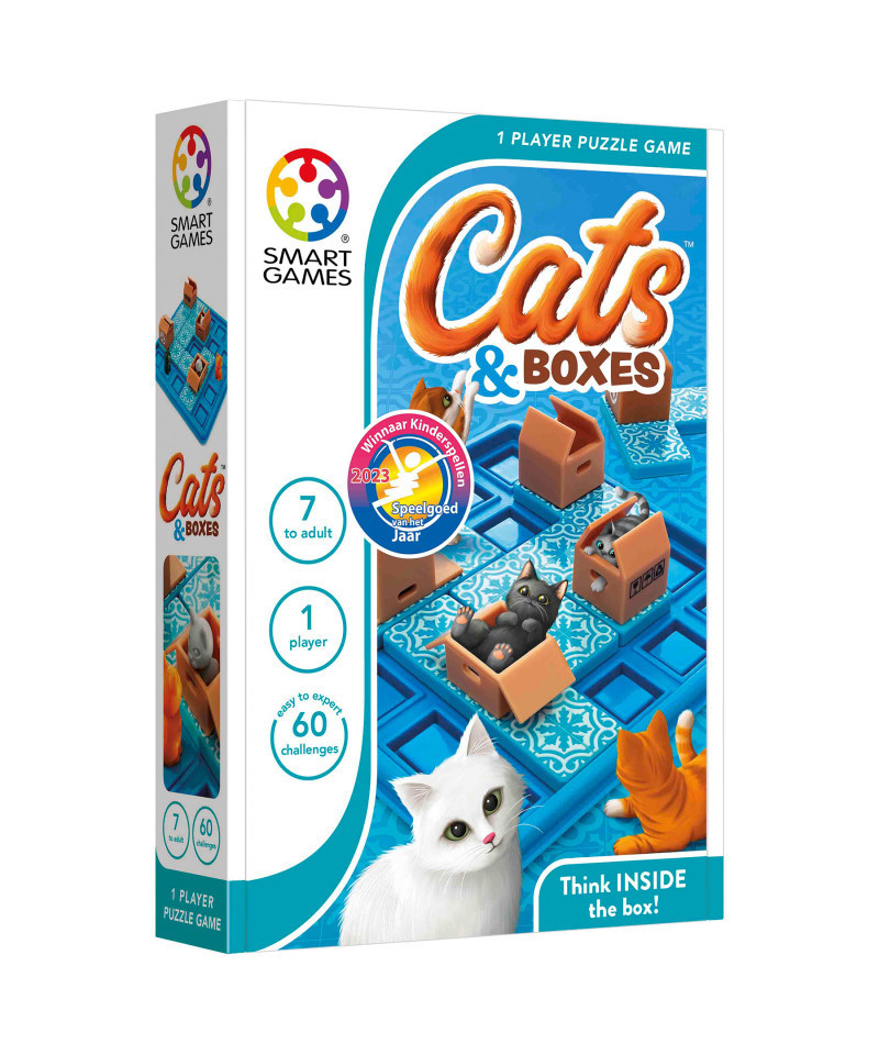 These cats love hiding in boxes! Move the puzzle pieces – one by one – until all of the cats are in a cardboard box. Can you help them find their favorite hiding spot? This sequential puzzle game for kids and adults comes with a portable gameboard and lid, making it purrrrrfect to take with you on the go!
