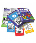 Nanofictionary is a story-telling game in three rounds. In the first phase, everyone builds a collection of story elements, featuring at least one of each type. Next, players take turns telling a brief story based on the ideas in the set of cards they selected. Lastly, everyone votes for the story they liked best (besides their own). Whoever gets the most votes wins!