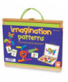 Calling all puzzle and pattern lovers! Imagination Patterns features the same popular shapes and puzzles as our original Imagination Magnets set, but adds cheerful checks, snappy stripes and polka dots! It's time to boost your child's fine motor and visual-thinking skills with this strategic building tool! Imagination Patterns features a sturdy wood carrying case with durable hinges and rope handles. Inside, 42 brightly-colored wooden magnetic blocks can be arranged on the board to replicate any of the 50 full-color puzzles, such as animals, faces, vehicles, flowers, structures and more! Plus, the magnetic creation surface doubles as a dry-erase board. The colorful pattern cards are numbered in order of difficulty, ranging from beginner to expert. As each pattern becomes more challenging, patience and confidence is gained through trial and error. Once recreating the patterns has been mastered, creativity takes over through free play. Imagination Patterns inspires hours of continuous play and will quickly become a household favorite!