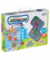 - 34-piece set includes 1 magnetic board, 13 durable magnetic tracks, 9 multi-level cards, 4 magnetic arrows, 3 magnetic obstacles, 3 white marbles and 1 answer key