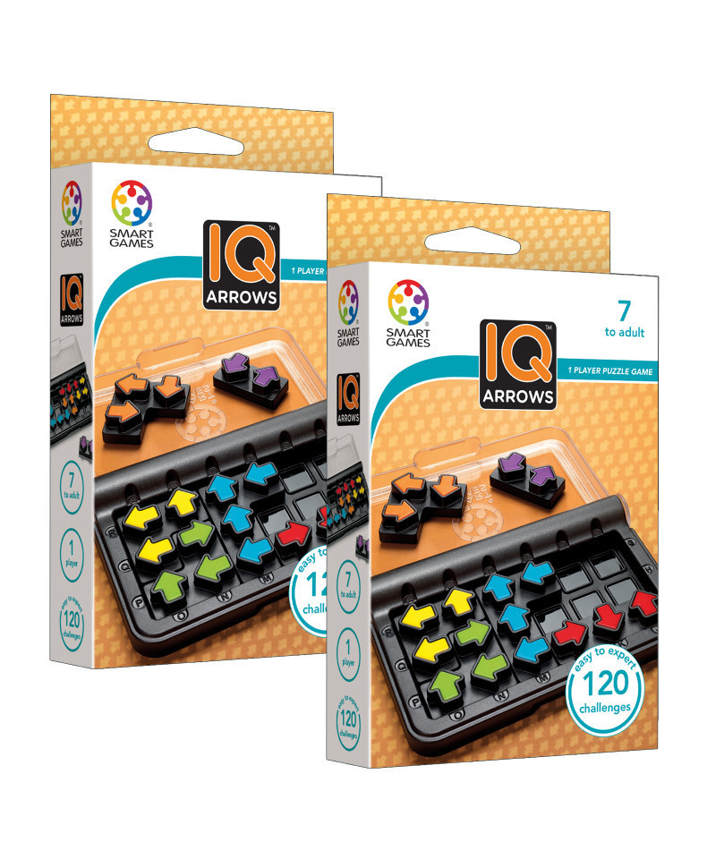 - On-the-go travel fun, IQ Arrows includes 120 challenges in a very compact, portable case with lid