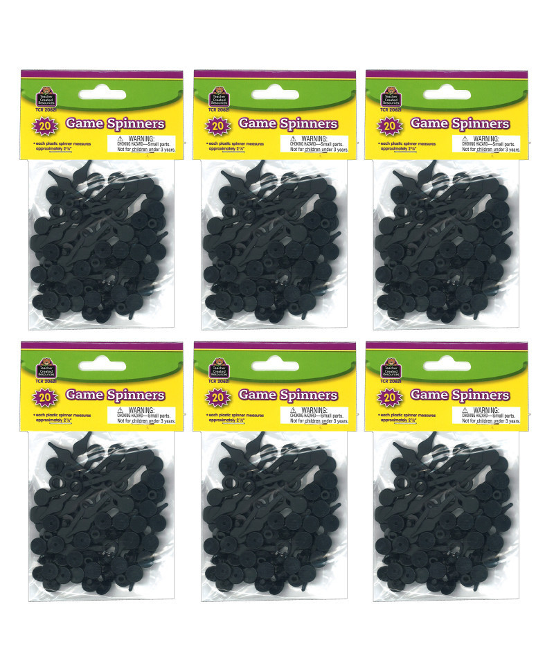 Replace broken/lost spinners. Design your own spinner games. Attach to spinner cards, paper plates, or construction paper to make your own designs. Approximately 2 3/8". Each pack includes 20 spinners. Sold as 6 packs for a total of 120 spinners.