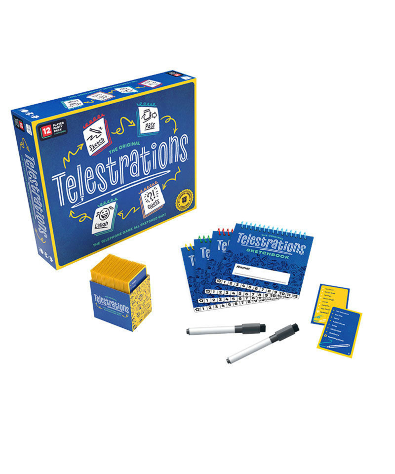 The Telestrations 12 Player Party Pack is the same award-winning sketch, pass & guess fun as The Original 8 Player Telestrations; only now the outcomes can go even further sideways with more players and 600 new words! Over 2,000 words, 12 erasable sketch books, 12 dry erase markers, 12 clean-up cloths. Perfect for parties, family reunions or to entertain a crowd. LOL fun for everyone! No Drawing Skills Required. Stick figures & sense of humor welcome! For 4-12 players, ages 11 and up.