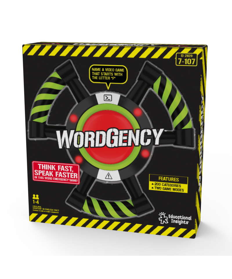 Think fast, speak faster! Listen to the category and letter and race to call out a word that fits, then hit the Wordgency button! Features competitive and cooperative game modes, 200 audio prompts, and flashing lights that keep players on their toes.