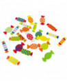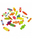 Players throw three colored dice and need to find the sweet with the right combination of colors that are shown on the dice. The popular game from Beleduc for the floor! Depending on which combination appears on the three color cubes, the matching color candy must be found.