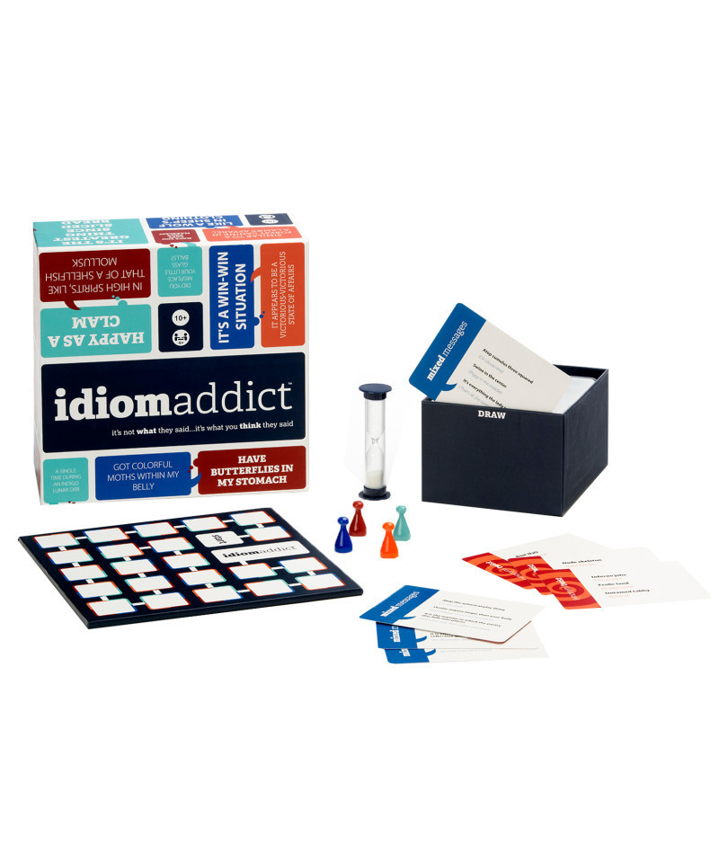 Idiom Addict is the party game that challenges players to decipher idioms and common phrases. Guess the most idioms and synonyms to be the first to cross the finish line and win!