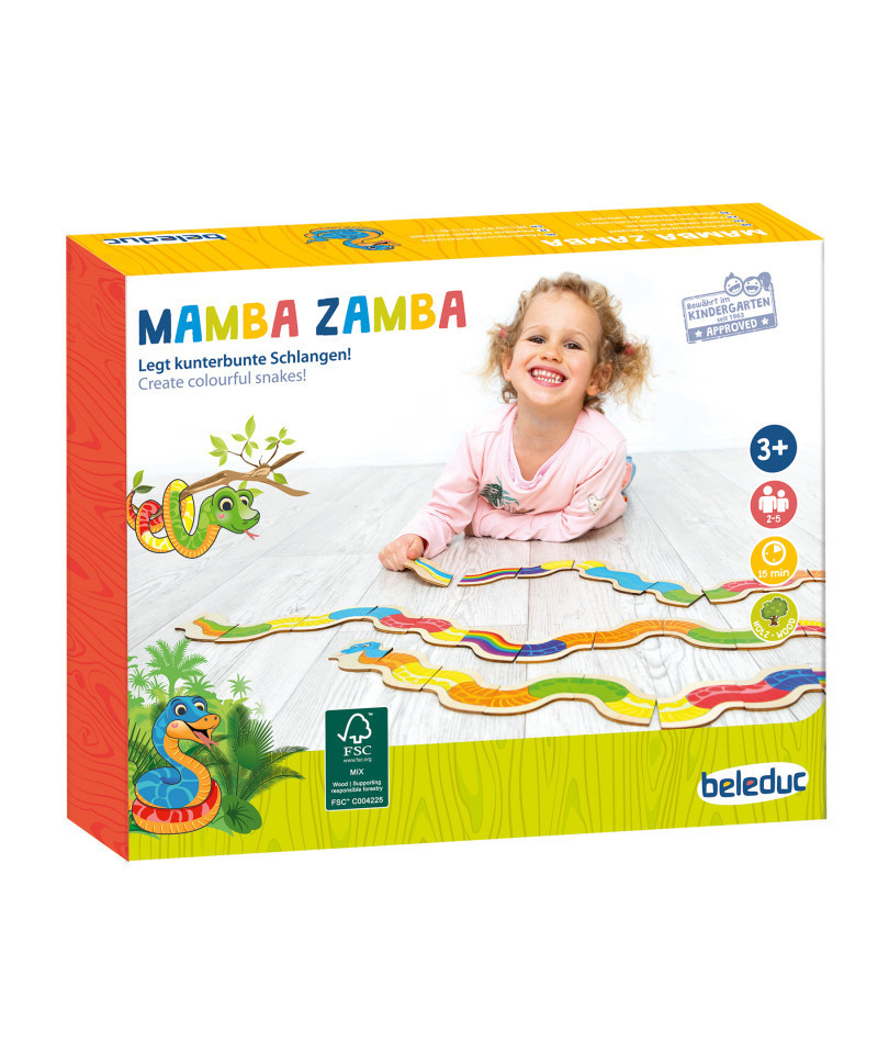 Introducing Mamba Zamba Game - a delightful and vibrant snake domino game designed specifically for children. This funny and colorful game will captivate the little ones, as they learn to match the correct colors and strategically place their cards. The objective is simple - be the first to lay down all your cards and become the ultimate winner. Mamba Zamba Game not only enhances color recognition skills but also encourages a good game overview. The snake comes to life when a head and a matching tail are cleverly placed, adding an extra element of excitement. Get ready for endless hours of fun and laughter with Mamba Zamba Game!