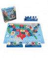 - Journey to 50 States in the USA – make connections with 50 state tiles, 10 colored airplane tiles, and 6 car tiles