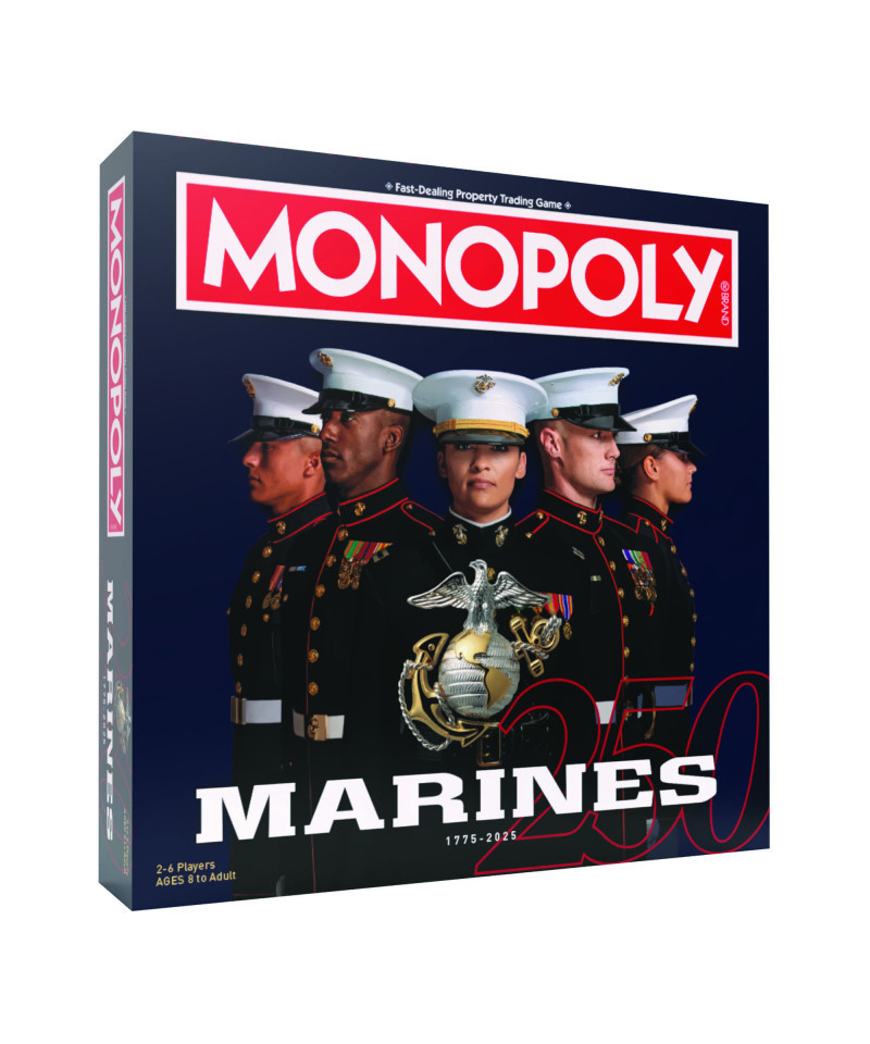 - CELEBRATE 250 YEARS: Honor the USMC with this special edition MONOPOLY game featuring Marine Corps bases and iconic symbols.