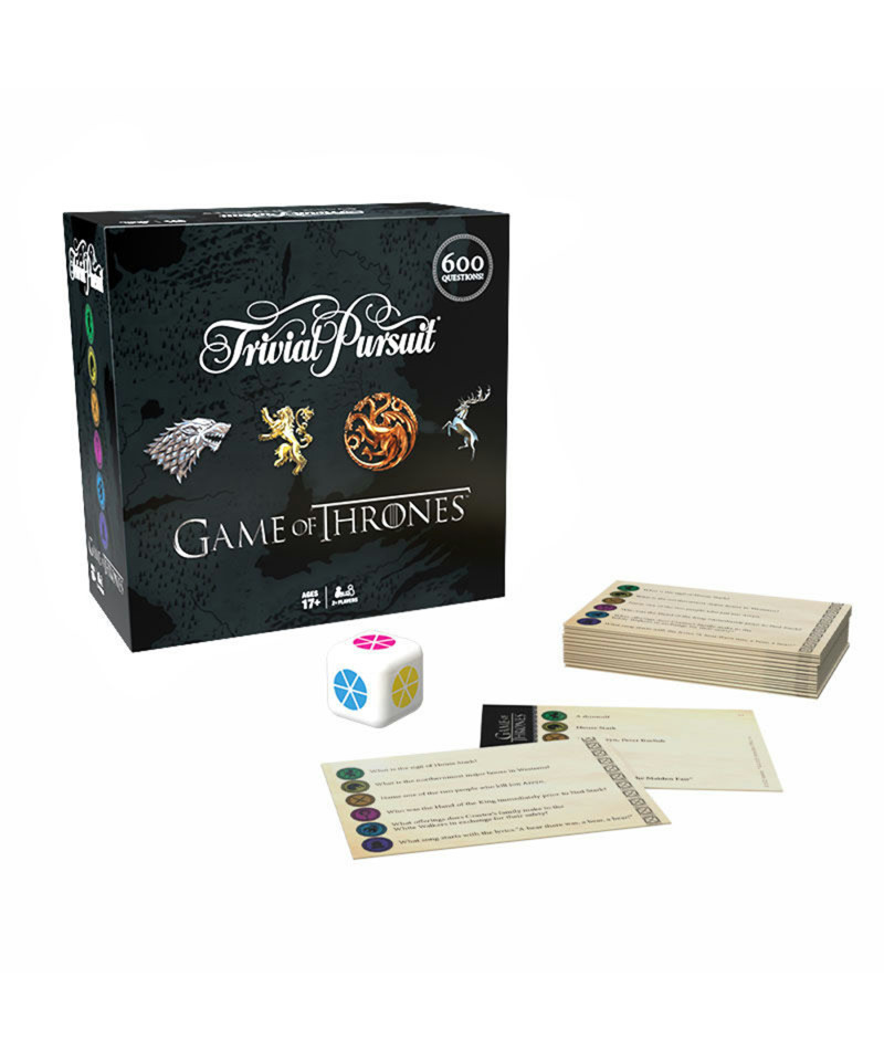 Prove your mastery of the Seven Kingdoms with TRIVIAL PURSUIT®: Game of Thrones! Test your knowledge of Westeros as you answer questions spanning noble houses, epic battles, political intrigue, and legendary creatures like White Walkers and dragons. Featuring 600 questions across six categories, this game challenges even the most devoted fans. Answer correctly, claim your wedges, and outwit your rivals to take the Iron Throne! With a collectible, travel-friendly design, this edition lets you bring the world of Game of Thrones anywhere. Do you have what it takes to rule the realm of trivia?