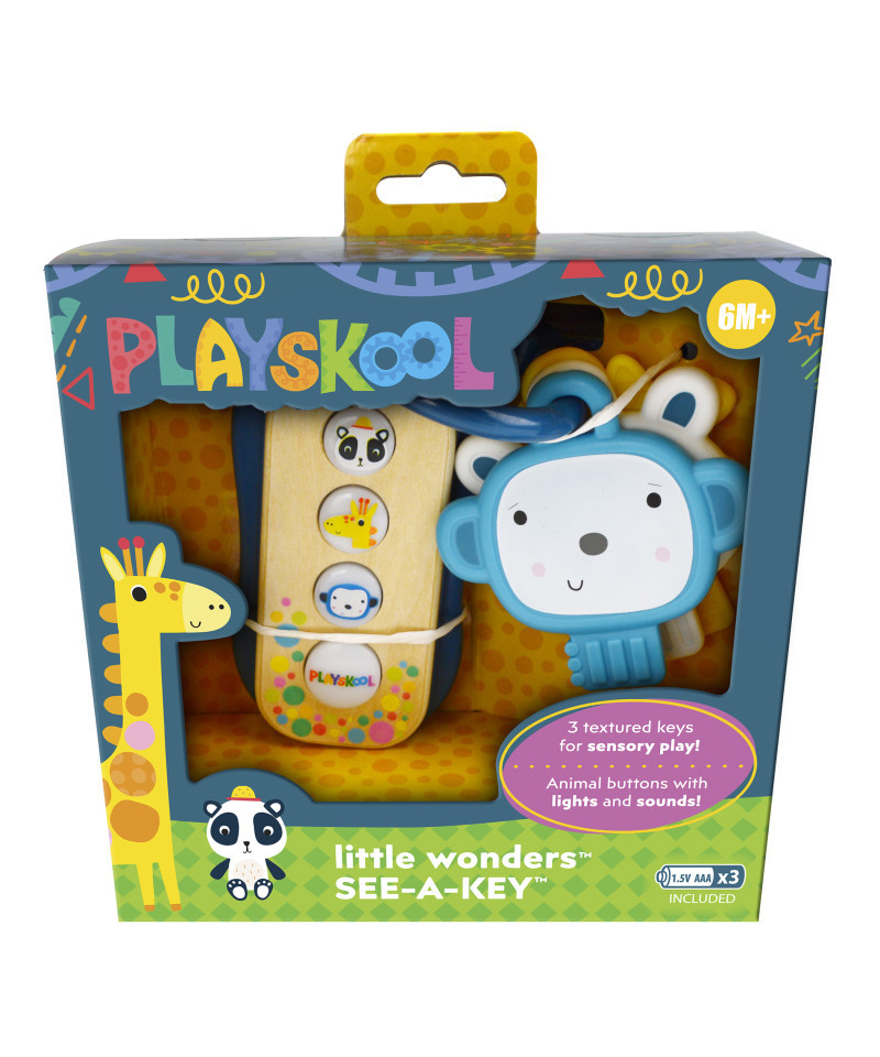 Unlock a world of play with See-A-Key! The rubber texture on the keys gives a sensory experience! Hear about playful Panda, tall Giraffe, and chatty Monkey when you press the matching buttons! Monkey around with these animal friends by manipulating the corresponding keys with adorable faces!
