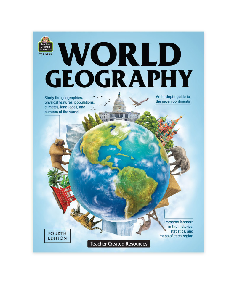 This 4th edition features updated maps and data, as well as a spotlight on the natural wonders located in each of the inhabited continents. Each section now includes a multiple-choice quiz to assess understanding of the continent covered in that section, and the entire book culminates with a brand new World Geography Game that can serve as an ideal (and fun!) cumulative assessment of all of the information students have learned about our world.