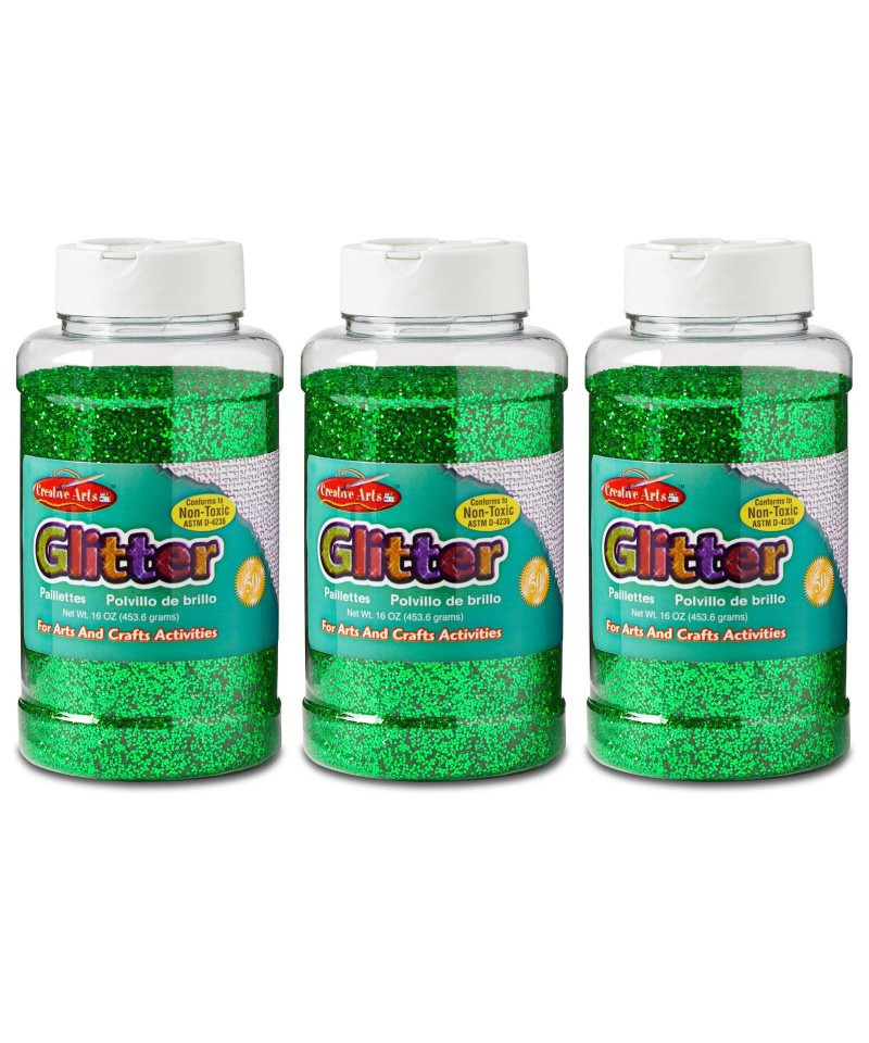 Brighten up any arts and craft project with these shimmering glitter flakes. Easy to use: Spread adhesive on any surface and then sprinkle glitter from our convenient shaker container. Each jar contains 1 pound of glitter. Sold as a pack of 3, for a total of 3 lb of glitter.