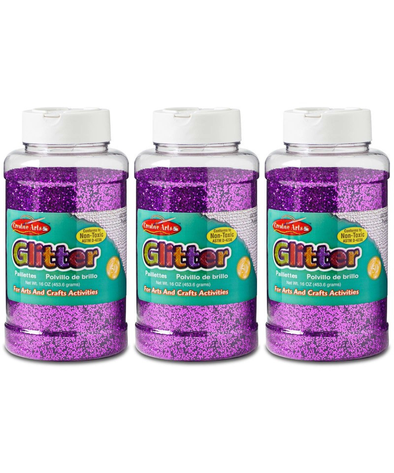 Brighten up any arts and craft project with these shimmering glitter flakes. Easy to use: Spread adhesive on any surface and then sprinkle glitter from our convenient shaker container. Each jar contains 1 pound of glitter. Sold as a pack of 3, for a total of 3 lb of glitter.