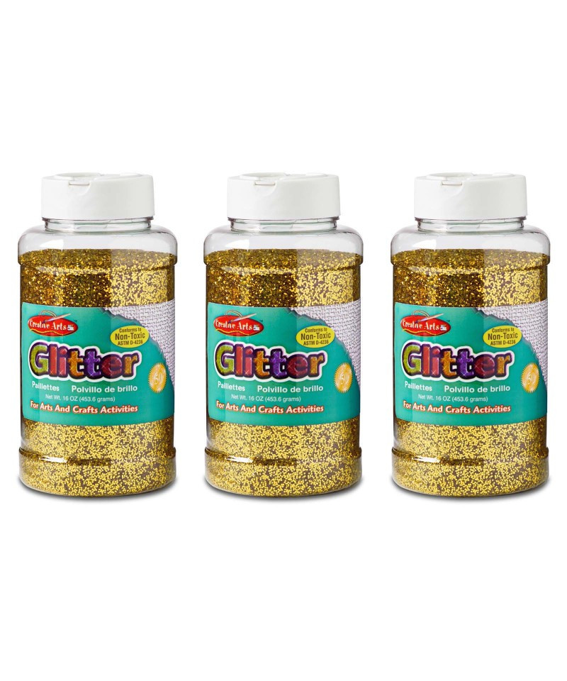 Brighten up any arts and craft project with these shimmering glitter flakes. Easy to use: Spread adhesive on any surface and then sprinkle glitter from our convenient shaker container. Each jar contains 1 pound of glitter. Sold as a pack of 3, for a total of 3 lb of glitter.