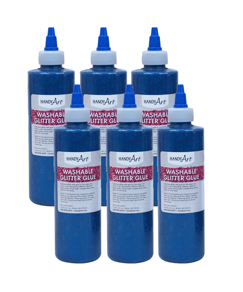 Handy Art® Washable Glitter Glue, 8 oz., Blue, Pack of 6