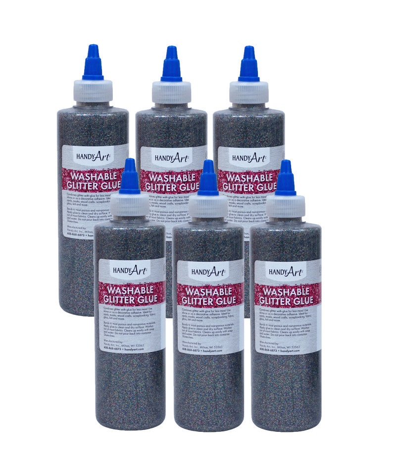 Handy Art® Washable Glitter Glue, 8 oz., Multi-Color, Pack of 6