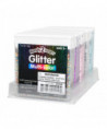 This set includes 5 containers with 1.8 oz of pink, purple, turquoise, silver and multicolor glitter. This shiny, vibrant glitter is the prefect addition to any arts and crafts supply! Adhere glitter to 2D art projects for color and sparkle. Create layered 3D art in jars, bottles, glasses, flower vases, shadowboxes and more. Or, incorporate glitter into a variety of sensory stations and activities. Crafting with glitter contributes to the development of children's fine motor skills, hand-eye coordination and creative expression. The containers feature an easy-pour lid and plastic tray for easy cleanup, storage and travel. This glitter is non-toxic. For ages 3+. Container size: 3.2"L x 3.4"H.