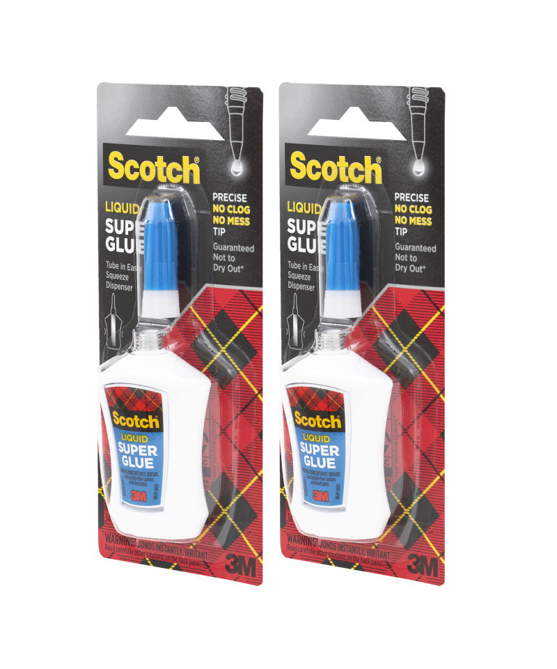 Scotch® Super Glue Liquid in a convenient squeeze bottle delivers a strong, fast-drying bond for a wide variety of surfaces. Whether you're working with wood, metal, leather, ceramic, rubber, or some plastics, this precision-tip adhesive ensures accurate application exactly where you need it. The compact 0.18 oz bottle is easy to use and perfect for quick fixes at home, in the office, or on the go. Trust Scotch® for durable, mess-free repairs with a bond that sets in seconds. Sold as a pack of 2.