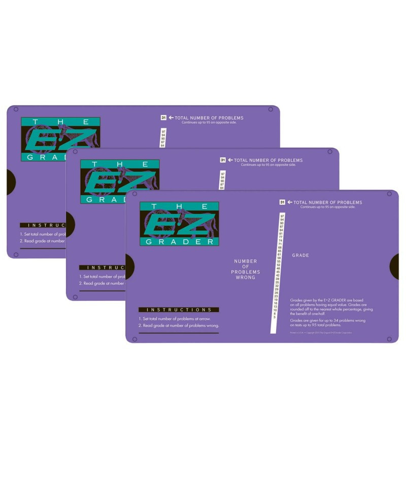 E-Z Grader Purple works the same as our best selling Original E-Z Grader. It's durable enough to withstand the battles of classroom instruction, and powerful enough to calculate grade percentages for up to 95 problems! This is a must have for all teachers! Purchase one for home and one for your classroom. Sold as a pack of 3.