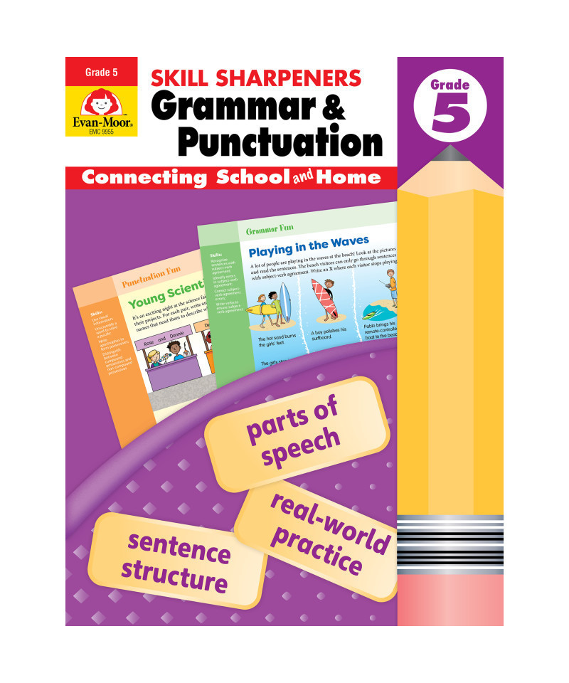 Skill Sharpeners: Grammar and Punctuation provides visually engaging reading selections, activities, and word games that will motivate your child to practice and learn essential grammar and punctuation skills. Plus, a Language Handbook provides you with a quick reference of the concepts covered.