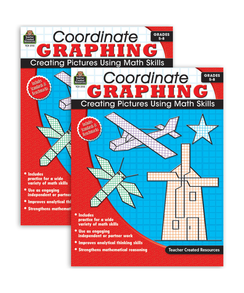 Add intrigue to math lessons that cover equations, fractions, percents, geometry, probability, and more! In each of 59 activities, students solve problems to find specific points to plot on graph paper. As they come up with the correct answers, they create pictures ranging from a dragonfly to a gas pump! Includes practice for a wide variety of math skills. Provides engaging activities suitable for independent or partner work. Improves analytical thinking skills and strengthens mathematical reasoning. Sold as a pack of 2 books.