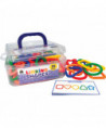 - The fifty shapes and five activity cards all come in a stackable plastic case with a handle for easy transportation and storage.