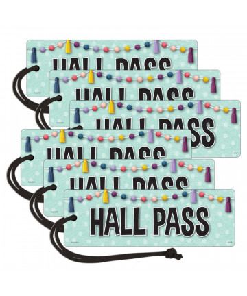 This Home Sweet Classroom Hall Pass features a magnetic back to attach to metal cabinets, doors, or any magnetically receptive surface. Use as a magnet or hang using the attached cord. Measures 6.75" x 2.25". Sold as a pack of 6 magnetic hall passes.