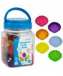 - 72 PIECES WITH 6 TEXTURES & COLORS -- This set features 72 shells with 6 different tactile surfaces and colors (red, yellow, orange, green, blue and purple). Young hands love to hold the fascinating textures!