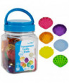 This set includes 72 seashell-shaped pieces in 6 different transparent colors (red, yellow, orange, green, blue, purple) and 6 different textures. It also includes an Activity Guide. These multicolored, see-through shells are perfect for counting, sorting, patterning, comparing, matching and classifying. Ideal for tactile learners, these shells are a great resource to explore STEM concepts via light panels or sensory bins. Foster fine motor skills as children use these hands-on manipulatives to learn addition, subtraction and symmetry. Made with durable plastic and without edges, these shells are the perfect math manipulative for home or classroom learning. Transparent Tactile Shells are packaged in a plastic jar with lid for easy cleanup and storage. Size: 1.6"W. For ages 18m+.