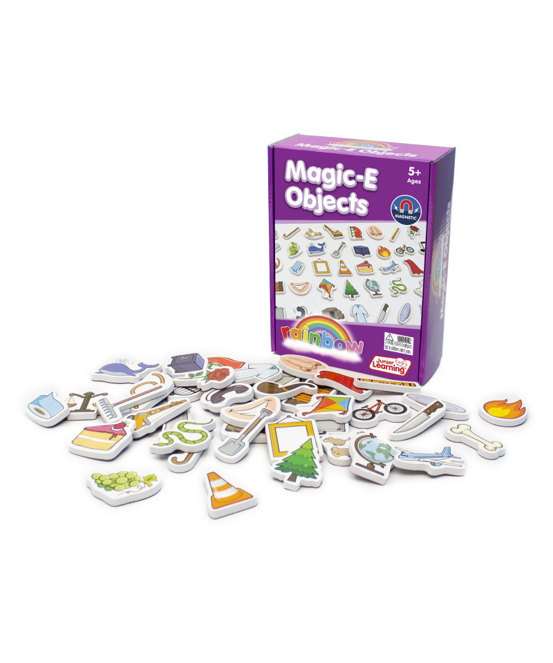 Magic-E objects are a set of 40 magnetic foam magic e objects in a box. Begin to teach magic e in an interactive, hands-on and fun way as children identify objects and sound out their magic e long vowel sounds such as bike, mice and cone. Each piece measures approximately 2".