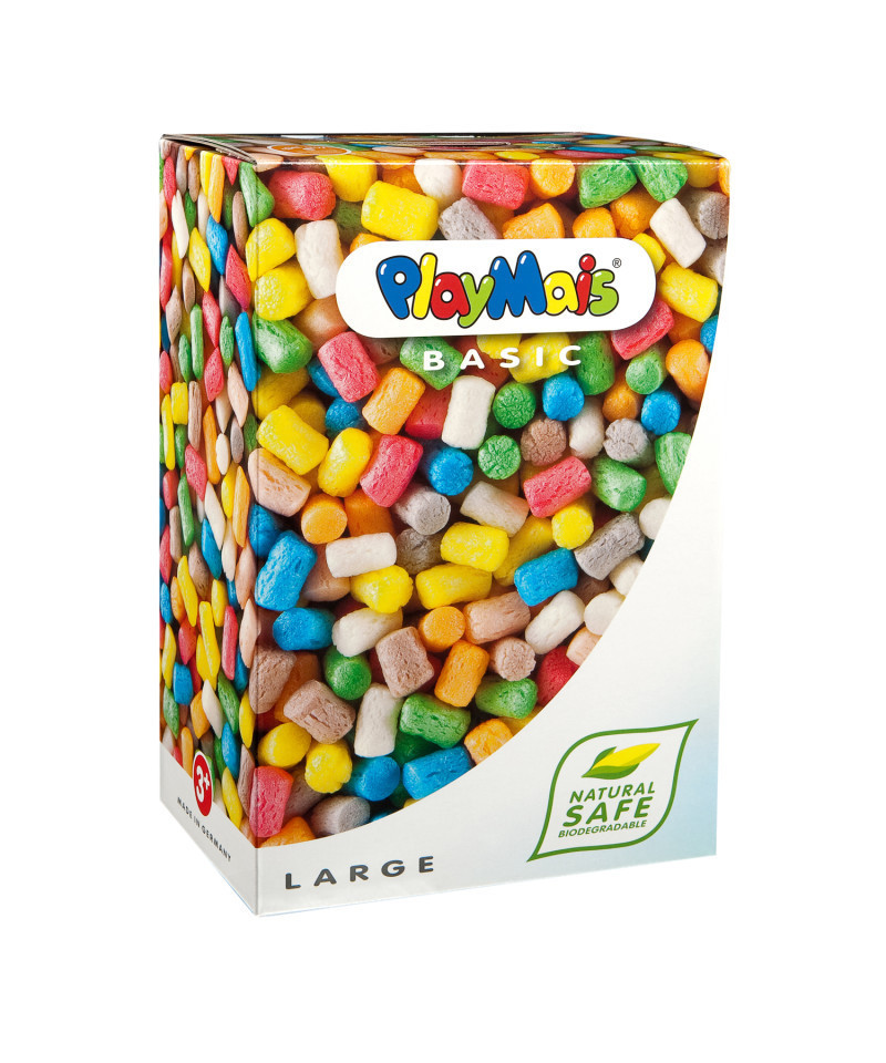 PlayMais is the crafting sensation from Germany. Made from corn, water, and food coloring it is 100% safe, natural, and biodegradable. Just use a little bit of water on the included sponge to stick them together, or to paper, cardboard, laminate, and glass. PlayMais can be squeezed, cut, and rolled to be formed into any shape guaranteeing endless imaginative and educational fun! Can be used with outlines for 2D activities or to make 3D creations. The PlayMais Basic Large includes 700 PlayMais, knife, sponge, and instructions.