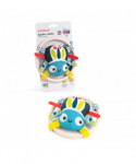 Engaging spider made of silicone and fabric whose textured legs-teether help alleviate teething symptoms. Its teething rings makes it easier to grip, and its interior rattle stimulates and motivates babies' movements. Develops fine and gross motor skills.
