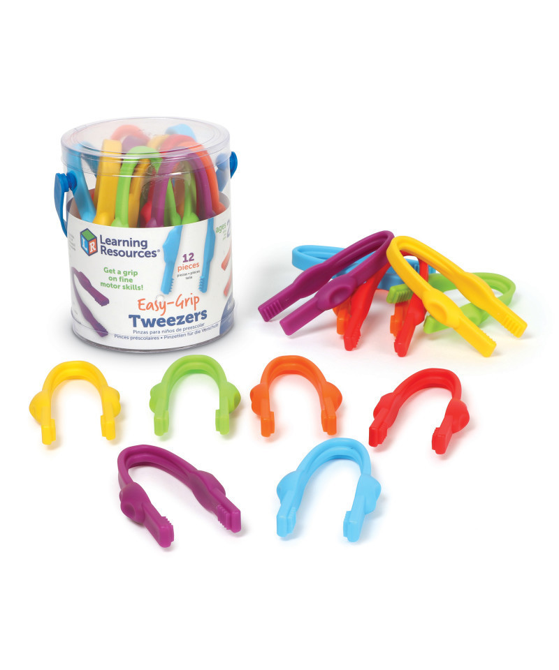 Get a grip on fine motor skills! Students strengthen hand muscles, pincer skills, coordination, and more when they grip and grab with the Easy-Grip Tweezers, one of the preschool learning toys from Learning Resources. Designed specifically with little hands in mind, these colorful chunky preschool learning toys come with finger placement grooves that ensure a comfortable grip and help kids get the hang of their new fine motor skills. These toddler toys are ready for all kinds of preschool learning activities—pair them with counters and manipulatives for a skill-building boost to counting and sorting lessons, or add them to classroom supplies and sensory bins for a sensory-friendly way to play, learn, and grow. This set of preschool learning toys includes 12 tweezers in six bright colors, so you'll always have enough for small-group activities. When the learning fun is done for the day, you can return these teacher must-haves to their reusable plastic storage bucket until it's time to play again!