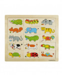 Match & Mix Animals Puzzle is a delightful puzzle or game that sparks creativity and memory development. With this puzzle, you can combine different animals and create fantasy creatures with amusing names. Crafted entirely from wood, this puzzle is not only durable but also eco-friendly. Its smooth edges ensure safe playtime for children of all ages. Whether played as a memory game or a lotto game, this puzzle guarantees hours of fun for one or more players. It's a perfect way to engage children in a playful and educational activity.