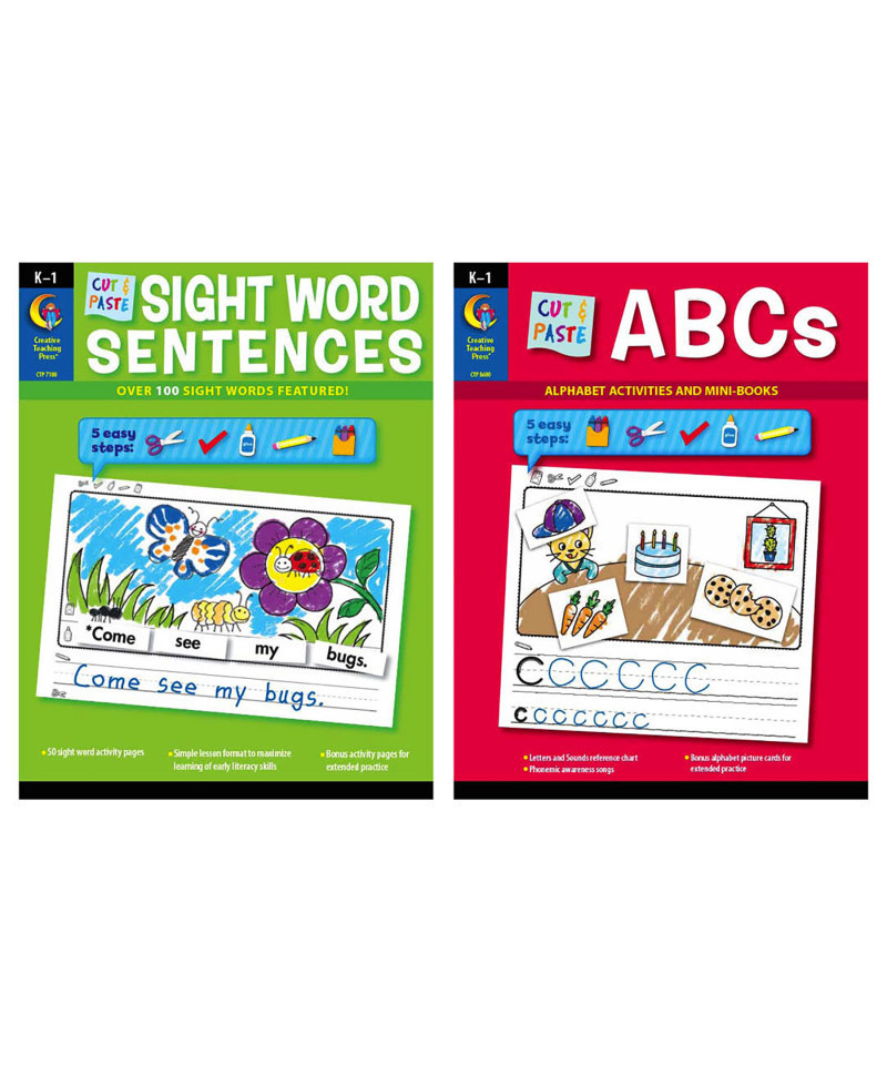- Develop early literacy skills and master over 100 sight words with the hands-on activities in this Cut and Paste Letters and Sight Words 2-Book Set.