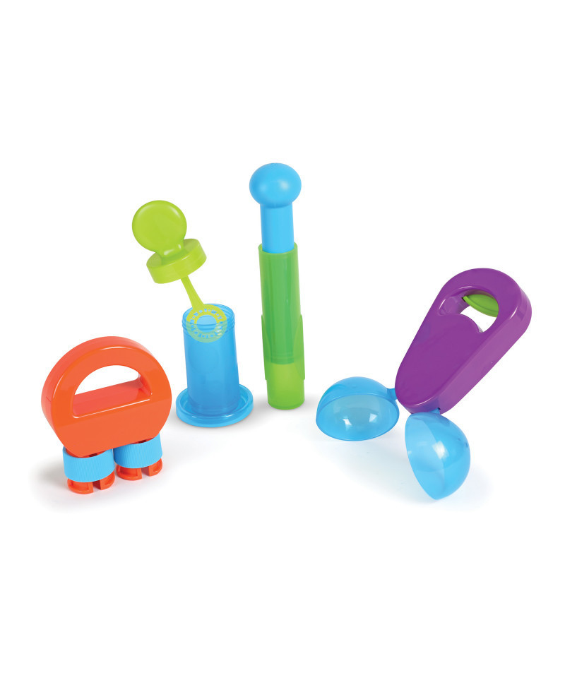 - Sensory Skills Outside: Set out on a sensory safari with outdoor play toys including a water sprayer, chalk holder, bubble wand, and grip grabber!