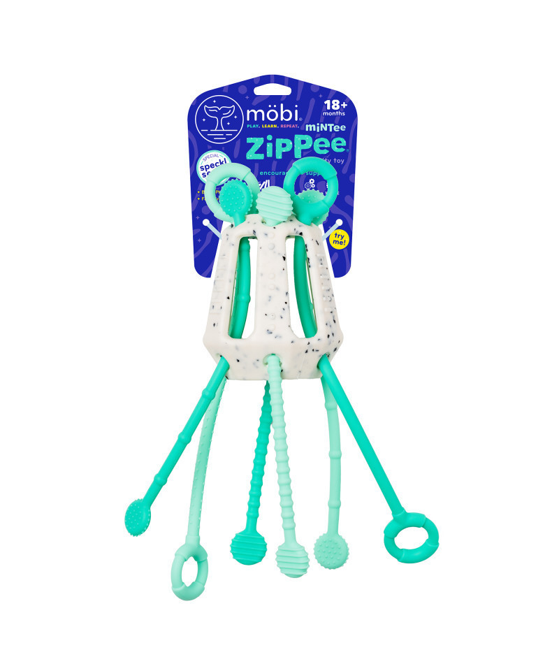 Mintee Zippee is a fun and engaging silicone activity toy designed for babies and toddlers aged 18 months and up. Little fingers will love the flexible, textured cords and easy-to-hold grips that make it simple and enjoyable to play with. As children pull the cords from side to side, they experience a variety of sounds and vibrations, keeping them entertained while stimulating their senses. Created in collaboration with doctors and therapists, Mintee Zippee offers a safe, clean, and therapeutic play experience. Made from BPA- and phthalate-free, food-grade silicone, it's the ideal toy for developing motor skills and sensory awareness in a playful way!