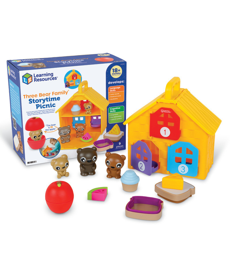 How can you help kids hit their developmental milestones? Check out this teddy bears' picnic that helps toddlers learn essential language skills. Little ones explore letter sounds, positional words like “in and “out”, following directions, and more as they play with this toddler toy's friendly bears. How does this preschool toy help kids learn? Hide-and-seek doors are ready for fun memory games, and colorful numbered doors strengthen essential preschool skills. Plus, with cute bear figures and tasty play food, this picnic is ready for imaginative fun and preschool learning activities! Best of all, the Three Bear Family Storytime Picnic makes an easy addition to collections of homeschool supplies, Montessori toys, and other classroom must-haves!