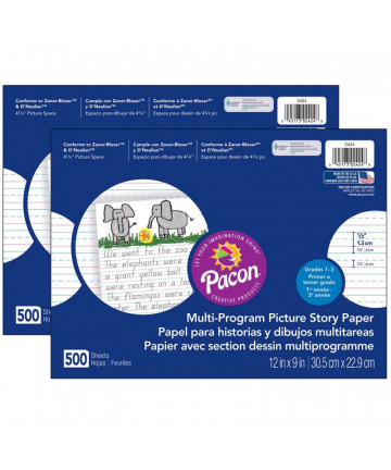 Clean White newsprint has a light blue ruling on both sides. Sheets are ruled 3/4" the long way, and a 3/8" dotted midline serves as a guide for controlled writing. Also includes a 3/8" skip space, which allows room for letter descenders, making it great for handwriting practice and tracking students' handwriting progress over time. Helps to build a solid foundation for students to write legibly and communicate effectively through writing. Each package contains 500 sheets. Measures 11" x 8.5". Recyclable. Sold as 3 packs for a total of 1500 sheets.