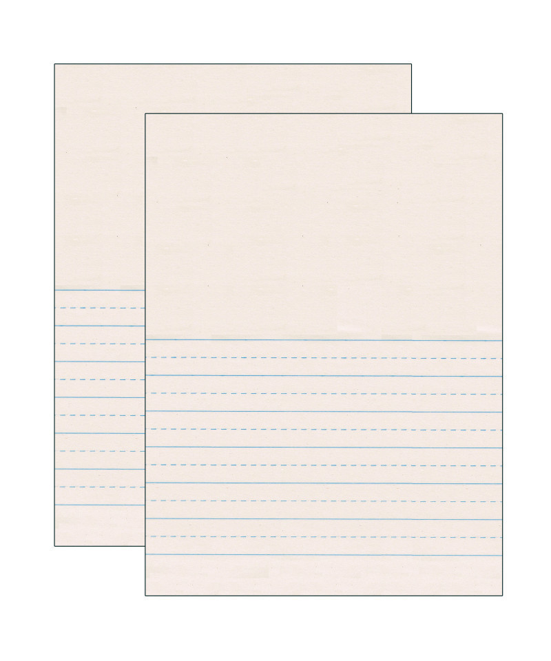 Clean White newsprint printed both sides with 5-1/2" blank picture story space at the top of the sheet. Great for students learning to write stories and drawing illustrations to complement writing. Ruled on both sides with a blue dotted midline. Package contains 500 sheets. Measures 9" x 12". Recyclable. Sold as 2 packs for a total 1,000 sheets.
