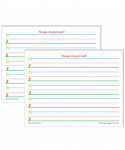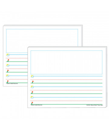 Smart Start Writing Paper (11" x 8-1/2") is truly a "Smart Start" for beginning and experienced writers. Bold graphics in blue, green, and red promote the feeling of success as children simply "Start at the Sky and pull down to the Ground" to form letters correctly. K-1 Writing Paper lines have 1" spacing. Each package includes 100 sheets. Sold as 2 packs for a total of 200 sheets.