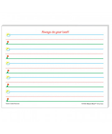 Manuscript Writing Pad includes 50 sheets measuring 10.5" x 8". Primary ruled (9 lines per page) to teach children how to properly position block letter printing, manuscript, and cursive writing. Features 1/2-inch ruling, 1/4-inch midline, and 1/4-inch skip space. Recommended for preschool, first grade, and second grade children. Block templates help refine fine motor skills in kids and are beneficial for stroke patients relearning fine motor control. Practice the alphabet with double-sided writing pads. Clear line rulings help maintain capital letters and lowercase positions, creating a guide for writing straight sentences. An amazing notepad for birthdays, holidays, celebrations, school events, and projects. This is a great creative writing and learning supply approved by teachers and parents, keeping young children focused on the task of writing without too many other graphics or distractions on a page. It helps writers be consistent in letter size, spacing, and straight lines.