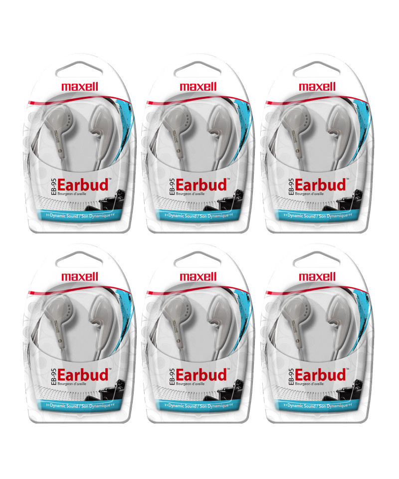 Maxell Budget Stereo Earbuds, White, Pack of 6