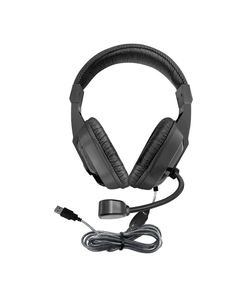 Deluxe Headset - USB W/ Boom Gooseneck Microphone, Padded Headband Leatherette Ear Cushions